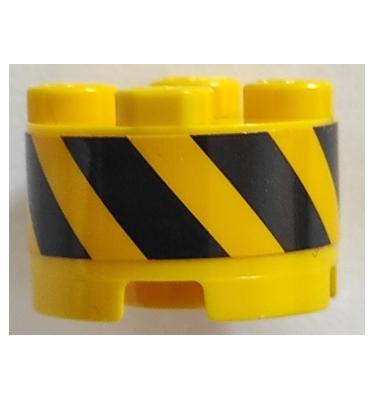 Brick, Round 2 x 2 with Axle Hole with Black and Yellow Danger Stripes Pattern (Sticker) - Set 70629