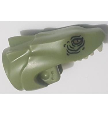Serpent Basilisk Head with Yellow Eyes, Black Wrinkles and White Teeth Pattern