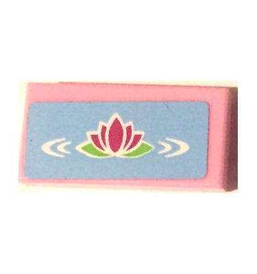 Tile 1 x 2 with Magenta Water Lily on Bright Light Blue Background Pattern (Sticker) - Set 41058