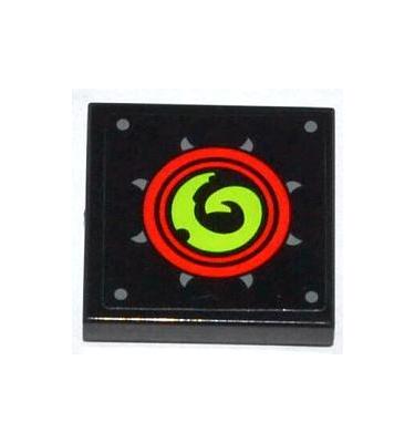 Tile 2 x 2 with Groove with Lime Swirl in Red Circles Pattern (Sticker) - Set 70504 A képen látható állapotban, minőségben és mennyiségben.