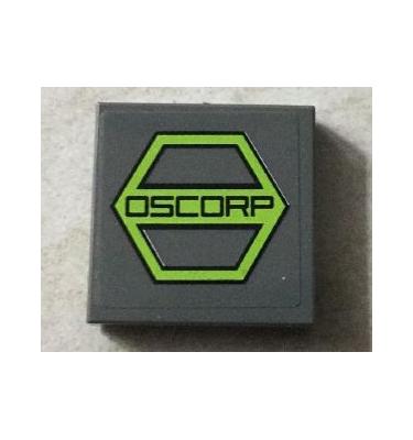Tile 2 x 2 with Groove with Black 'OSCORP' on Lime Hexagon Pattern (Sticker) - Set 76016 A képen látható állapotban, minőségben és mennyiségben.