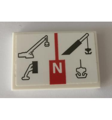 Tile 2 x 3 with Technic Crane Functions, Letter N Pattern (Sticker) - Set 42082