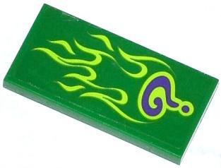 Tile 2 x 4 with Dark Purple Question Mark and Lime Flames Pattern (Sticker) - Set 76012 A képen látható állapotban, minőségben és mennyiségben.