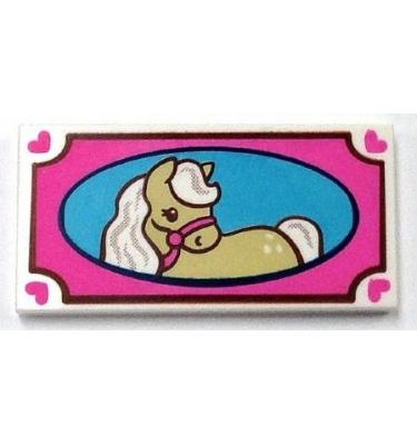 Tile 2 x 4 with Dark Pink Picture Frame and Tan Horse Pattern