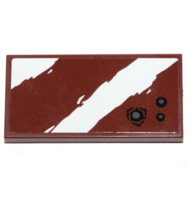Tile 2 x 4 with 2 Rugged White Diagonal Stripes and Blaster Marks on Reddish Brown Background Pattern (Sticker) - Set 75254 A képen látható állapotban, minőségben és mennyiségben.