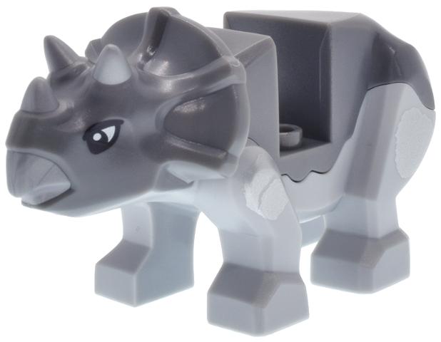 Dinosaur Triceratops Baby with Fixed Dark Bluish Gray Top with Molded Flat Silver Horns and Beak and Printed White Eyes and Silver Spots Pattern