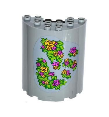 Cylinder Half 3 x 6 x 6 with 1 x 2 Cutout with Yellow and Pink Flowers and Green Leaves Pattern (Sticker) - Set 41065