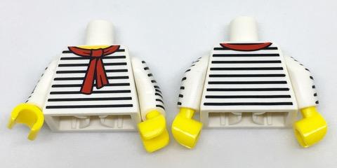 Torso Black Thin Stripes, Red Scarf Front and Back Pattern / White Arms with Black Thin Stripes Pattern / Yellow Hands