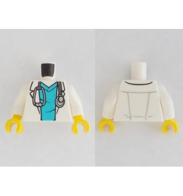 Torso Hospital Lab Coat over Medium Azure Scrubs, Silver Stethoscope Pattern / White Arms / Yellow Hands A képen látható állapotban, minőségben és mennyiségben.