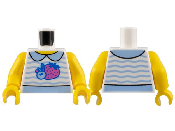 Torso Shirt, Yellow Neck, Bright Light Blue Collar and Wavy Stripes, Blueberry, Dark Pink Strawberry Pattern / Yellow Arms / Yellow Hands