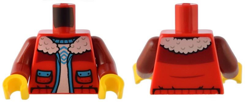 Torso Jacket with White Fleece Collar, Dark Azure Trim and Pockets over White Shirt Pattern / Dark Red Arms / Yellow Hands