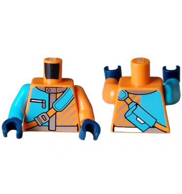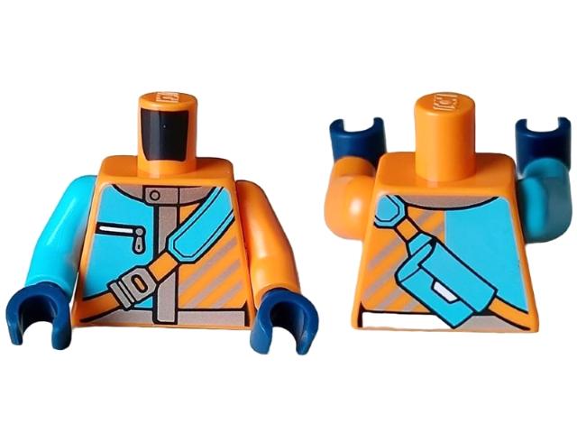 Torso Jacket with Silver Collar, Trim, and Diagonal Stripes, Pocket with Zipper, Medium Azure Shoulder Bag Pattern / Orange Arm Left / Medium Azure Arm Right / Dark Blue Hands