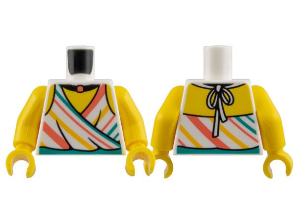 Torso Halter Top with Bright Light Orange, Coral, and Dark Turquoise Diagonal Stripes, Black Choker Necklace, Yellow Neck and Shoulders Pattern / Yellow Arms / Yellow Hands A képen látható állapotban, minőségben és mennyiségben.