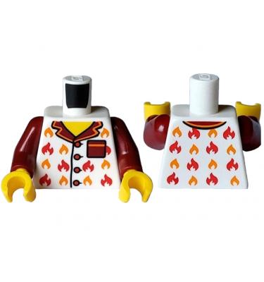 Torso Pajama Shirt with Buttons, Dark Red Pocket and Collar, Red and Orange Flames, Yellow Neck Pattern / Dark Red Arms / Yellow Hands A képen látható állapotban, minőségben és mennyiségben.