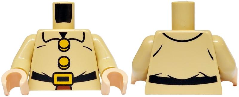 Torso Jacket with Collar over Reddish Brown Shirt, Black Belt, Bright Light Orange Buckle and Buttons without Lines Between Pattern / Tan Arms / Light Nougat Hands