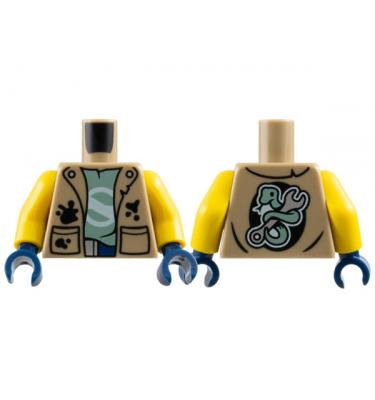 Torso Vest with Black Pockets and Splotches over Sand Green T-Shirt, Snake and Wrench on Back Pattern / Yellow Arms / Dark Blue Hands A képen látható állapotban, minőségben és mennyiségben.