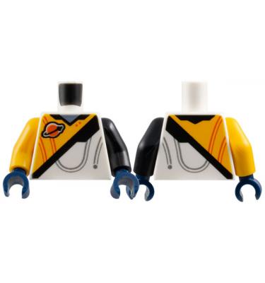 Torso Spacesuit with Bright Light Orange Panel, Classic Space Logo, Black Stripe, and Sand Blue Collar Pattern / Black Arm Left / Bright Light Orange Arm Right / Dark Blue Hands
