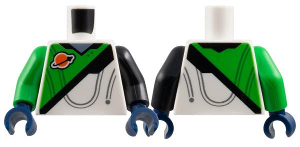 Torso Spacesuit with Bright Green Panel, Classic Space Logo, Black Stripe, and Sand Blue Collar Pattern / Black Arm Left / Bright Green Arm Right / Dark Blue Hands A képen látható állapotban, minőségben és mennyiségben.