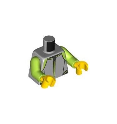 Torso Wetsuit with Lime and Black Panels and Trim, Dark Silver Zipper, Symbol in Circle on Back Pattern / Lime Arms / Yellow Hands