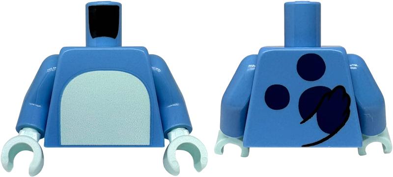Torso with Light Aqua Stomach, Dark Blue Spots and Tail on Back Pattern / Medium Blue Arms / Light Aqua Hands