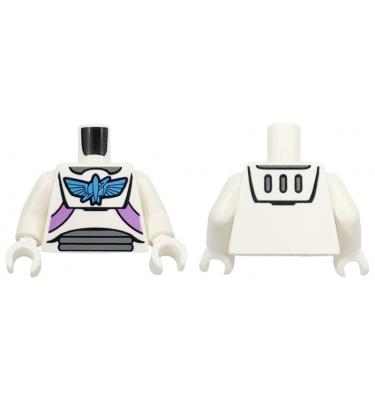 Torso Spacesuit with Dark Azure Star Command Logo, Dark Bluish Gray Neck and Stomach Panels, Medium Lavender Straps Pattern / White Arms / White Hands A képen látható állapotban, minőségben és mennyiségben.