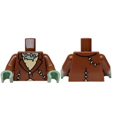 Torso Torn Jacket, Tan Tattered Shirt, Stitches on Front and Back, Sand Green Neck Pattern (Frankenstein Monster) / Reddish Brown Arms / Sand Green Hands