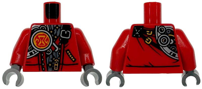 Torso Vest with Zipper, Pocket and Mechanical Shoulder, Bright Light Orange Wires and Hourglass, Black Straps, Silver Buckles Pattern / Red Arms / Flat Silver Hands