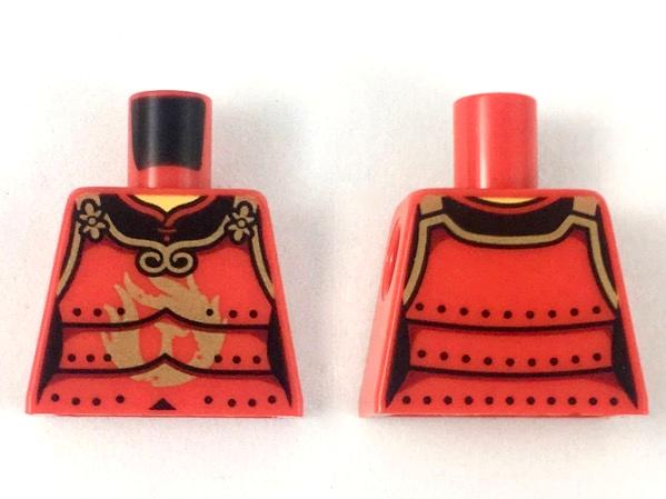 Torso Ninjago Female Samurai Armor in 3 Sections with Gold Clasps, Trim and Phoenix Logo Pattern A képen látható állapotban, minőségben és mennyiségben.