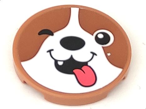 Tile, Round 3 x 3 with Winking Dog Face with Coral Tongue, Black Nose and Mouth Pattern (Sticker) - Set 41699 A képen látható állapotban, minőségben és mennyiségben.