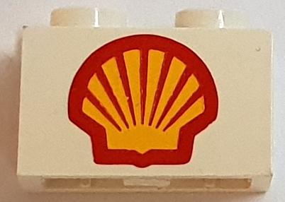 Brick 1 x 2 with Large Shell Logo Pattern - Debossed Print A képen látható állapotban, minőségben és mennyiségben.