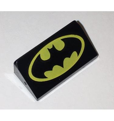 Slope 30 1 x 2 x 2/3 with Yellow Batman Logo Pattern (Head Facing Tall End of Slope)