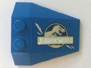 Wedge 4 x 4 Triple with Stud Notches with Jurassic World Logo and Claw Scratch Marks on Blue Background Pattern Model Left Side (Sticker) - Set 75915