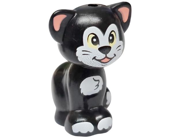 Cat, Friends Style, Sitting with Bright Light Yellow Eyes, Coral Inner Ears and Tongue, White Face, Patches and Paws Pattern (Disney Figaro)