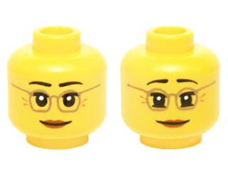Minifigure, Head Dual Sided Female Dark Tan Glasses, Laugh Lines, Dark Orange Lips, Neutral / Raised Eyebrows Amused Pattern A képen látható állapotban, minőségben és mennyiségben.