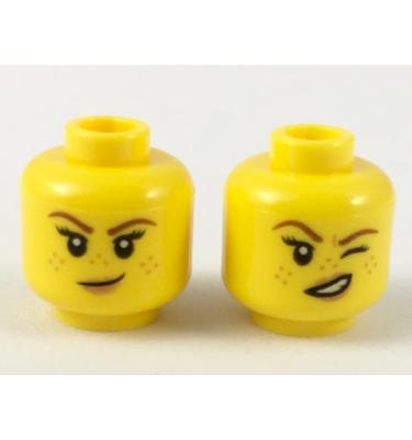 Minifigure, Head Dual Sided Female Reddish Brown Eyebrows, Medium Nougat Freckles and Lips, Smirk / Wink and Open Mouth with Teeth Pattern A képen látható állapotban, minőségben és mennyiségben.