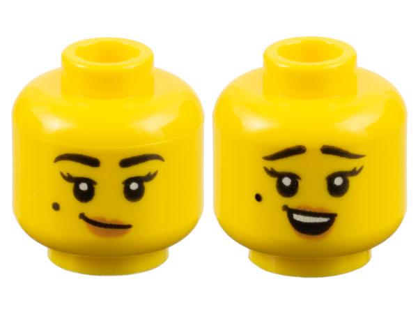 Minifigure, Head Dual Sided Female Black Eyebrows and Beauty Mark, Medium Nougat Lips, Lopsided Grin / Surprised Open Mouth with Top Teeth Pattern A képen látható állapotban, minőségben és mennyiségben.