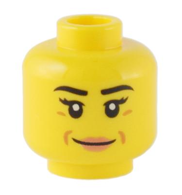 Minifigure, Head Female Black Eyebrows, Eyelashes, Medium Nougat Dimples, Nougat Lips, Grin Pattern A képen látható állapotban, minőségben és mennyiségben.