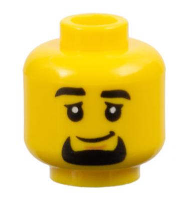 Minifigure, Head Black Eyebrows and Goatee, Medium Nougat Chin Dimple, Lopsided Grin Pattern A képen látható állapotban, minőségben és mennyiségben.