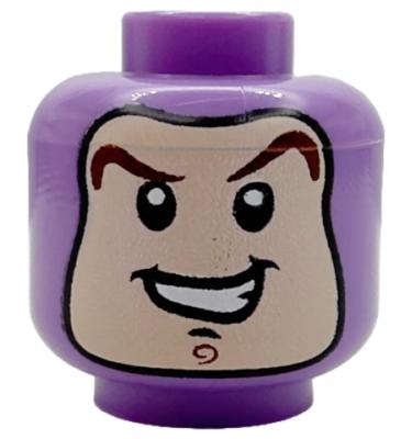 Minifigure, Head Balaclava with Face Hole, Reddish Brown Curved Eyebrows, Chin Swirl, Black Chin Dimple, Open Mouth Smile Pattern (Buzz Lightyear)