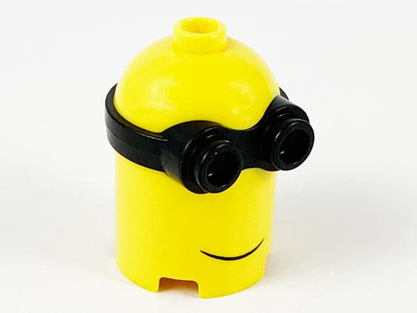Minifigure, Head, Modified Minion, Extra Tall with Molded Black Goggles and Printed Grin Pattern