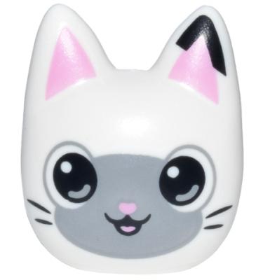 Mini Doll, Head, Modified Cat Narrow with Bright Pink Ears, Nose and Tongue, Light Bluish Gray Face, Black Eyes and Whiskers Pattern A képen látható állapotban, minőségben és mennyiségben.