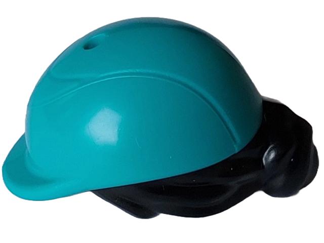 Mini Doll, Hair Combo, Hair with Hat, Bun and Side Bangs, Hole on Top with Molded Dark Turquoise Horse Riding Helmet Pattern A képen látható állapotban, minőségben és mennyiségben.