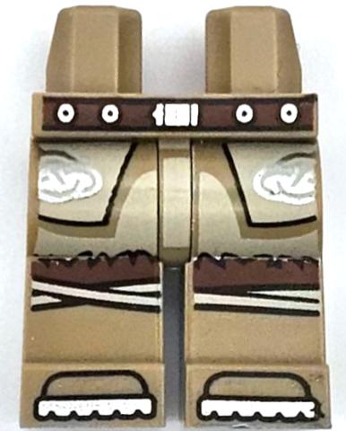 Hips and Legs with Reddish Brown Belt with Silver Buckle and Circles, Tan Tunic with Fur Hem and Celtic Knots, Knee Wrappings, Shoe Tips Pattern