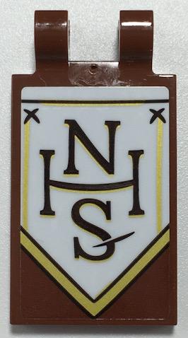 Tile, Modified 2 x 3 with 2 Open O Clips with Black and Gold 'NHS' on White Banner Pattern Model Left Side (Sticker) - Set 70425 A képen látható állapotban, minőségben és mennyiségben.