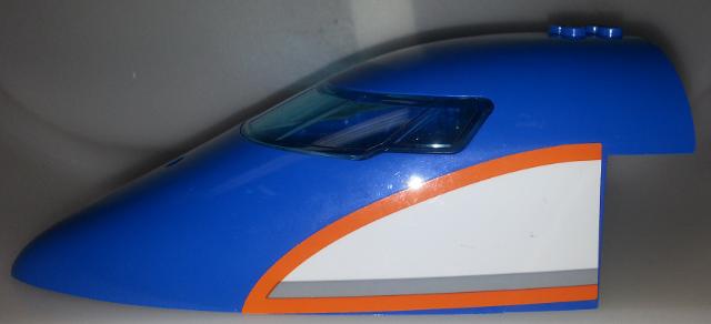 Repülőgép orr, tetején ívelt 8 x 16 x 5, átlátszó-világoskék üveggel - MINDKÉT OLDAL MINTÁS / MATRICÁS