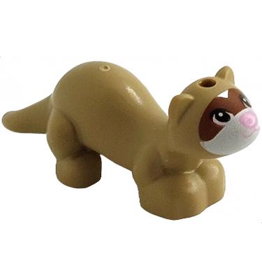 Ferret, Friends Style with White Face, Bright Pink Nose and Mouth and Black Eyes with Reddish Brown Contour Pattern (Bandit)